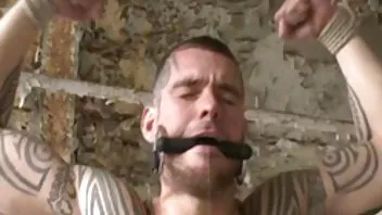 纹身的年轻荡妇愉快地通过墙上的洞一次吸几个阴茎。