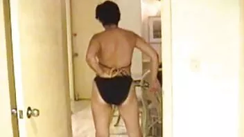 一个邻居找到一个成熟的家庭主妇试穿衣服和他妈的