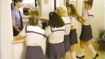 三个成熟的家庭主妇拖进了戴着眼镜的书呆子,让他成为一个男人